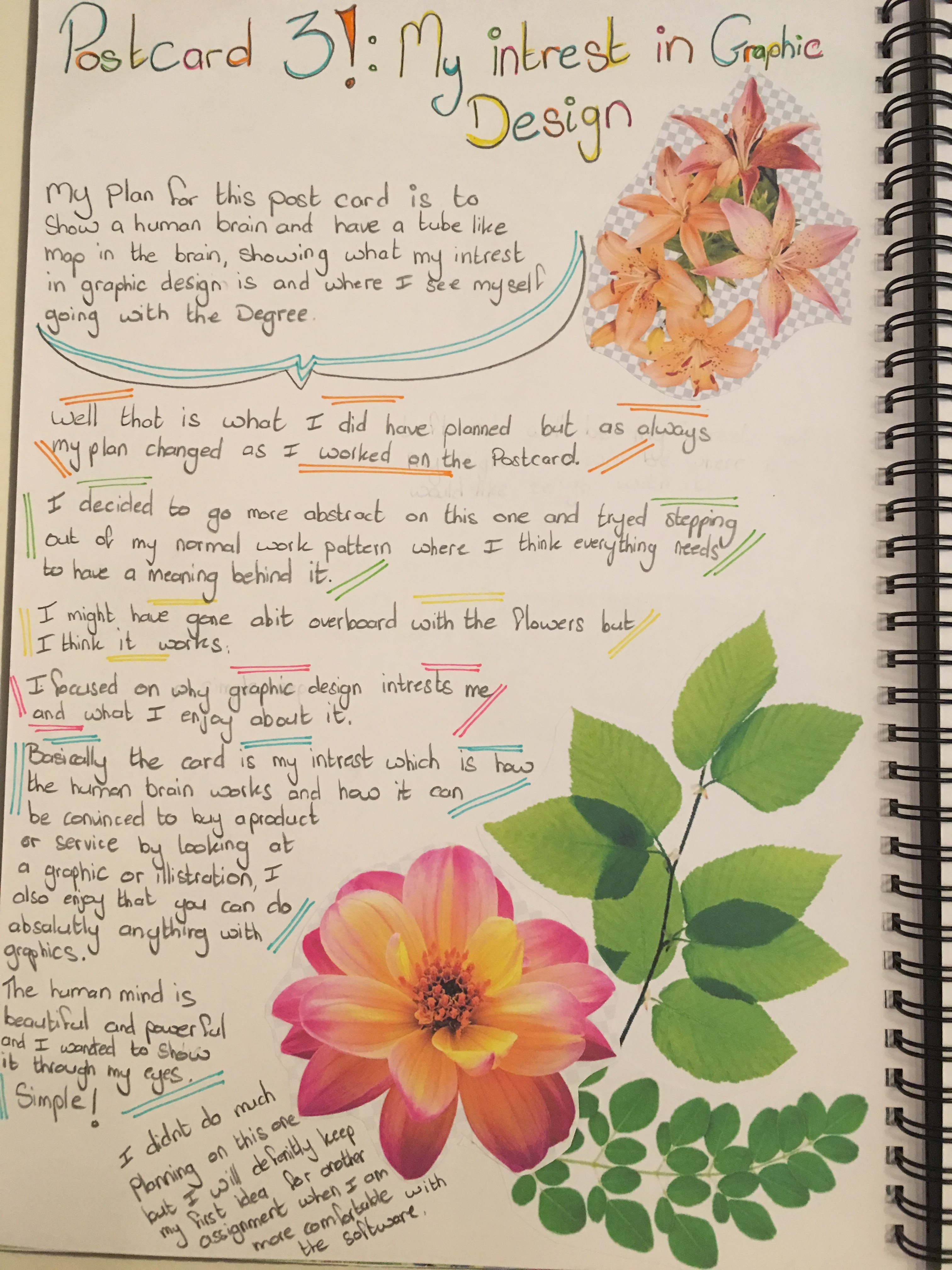 Brief: Design a series of at least three postcards that say something about who you are, your interests in graphic design and your wider cultural influenced or interests.