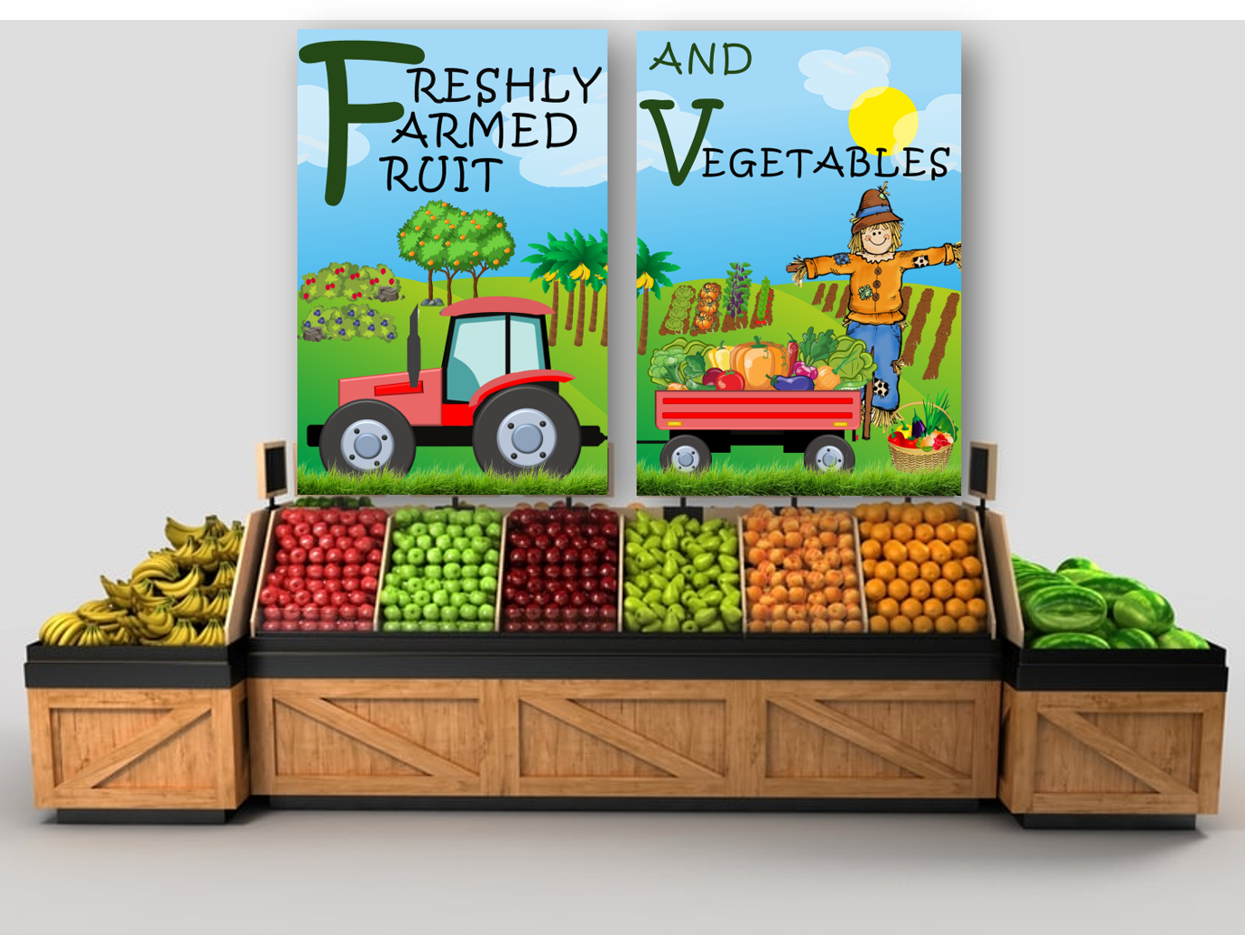 Your local green grocer has asked you to produce a point of sale display to go above the fruit and vegetables in their shop. They want the display to be seen from the street through the shop windows to attract passing shoppers in order to boot their trade. The shop is in a small precinct which also houses a baker, a newsagent, an independent shoe shop and is on the route to an from a well respected primary school.
