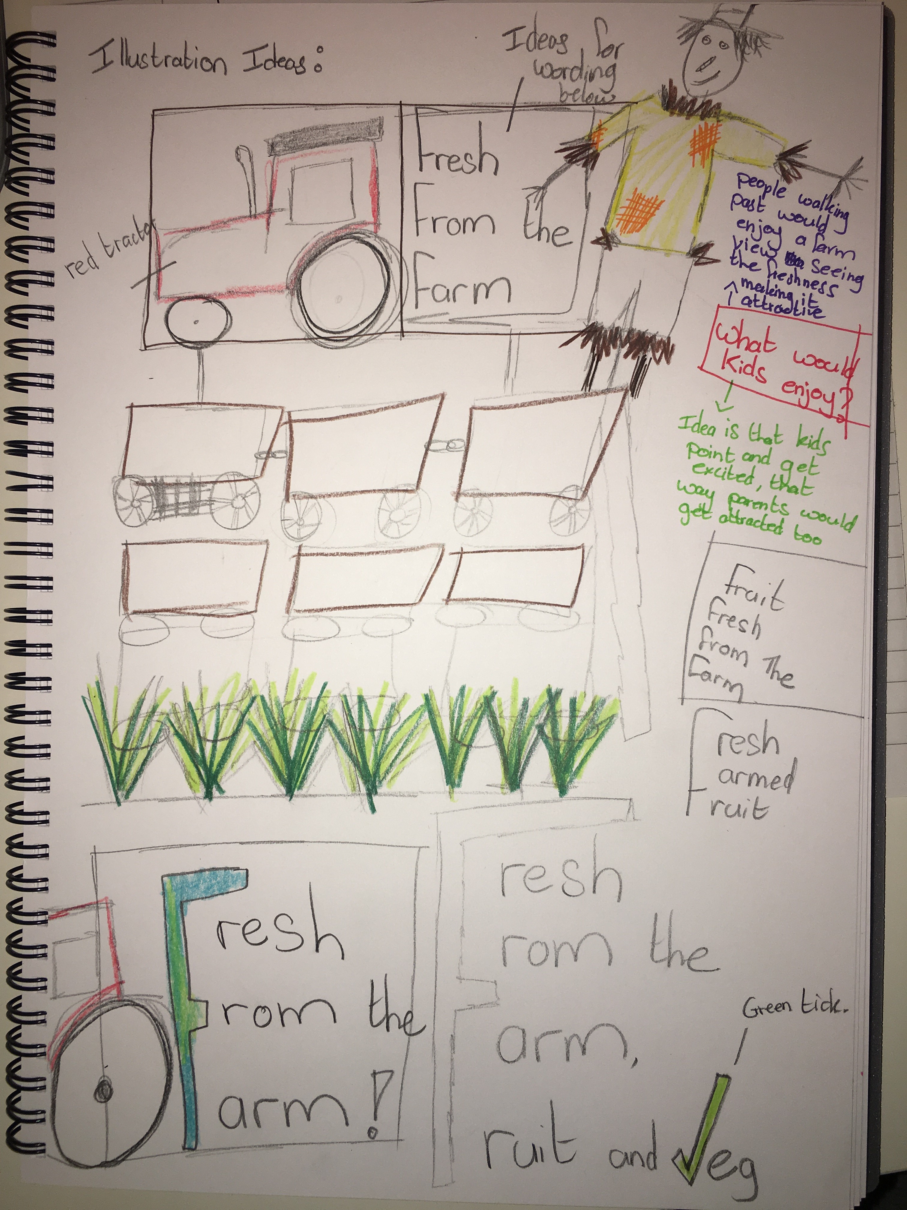 I decided to use a full cartoon illustration, using real life food is a challenge because as a shopper I always compare the displays to the fresh produce on sale and I am always disappointed as you cant compare the two and we all know by now that display images are doctored to make the fruit look as attractive as they can however this is unrealistic and as a shopkeeper you cannot afford to disappoint the customers so I have focused on a cartoon illustration, that way the shopper has nothing to compare the fruit and veg to.
